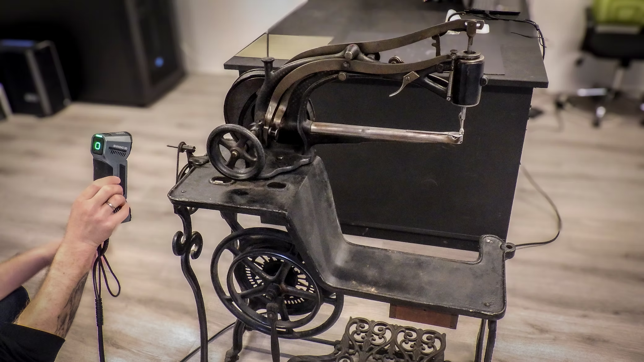 Eine Nähmaschine mit Baujahr 1880 soll durch ein Retrofit modernisiert und zu einer Stichelmaschine umfunktioniert werden.
